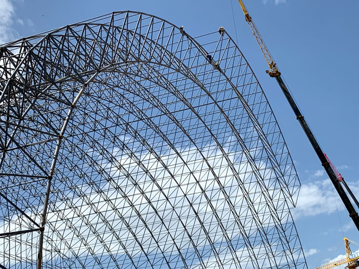 (2)网架加工前应对现场尺寸进行复测,确认无误后方可进行加工、安装;网架制作、运输、安装应遵守《空间网格结构技术规程》JGJ7-2010、《钢网架济源螺栓球节点》JG/T 10-2009、《钢网架济源螺栓球节点用高强度螺栓》 GB/T 16939-2016、《钢结构济源工程济源施工规范》 GB50755-2012、《钢结构济源工程施工质量验收标准》 GB50205-2020。